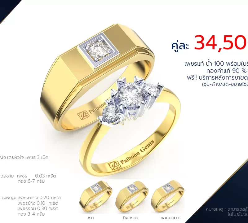 วงชายหน้าสี่เหลี่ยม & วงหญิงเตยหัวใจเพชร 3 เม็ด