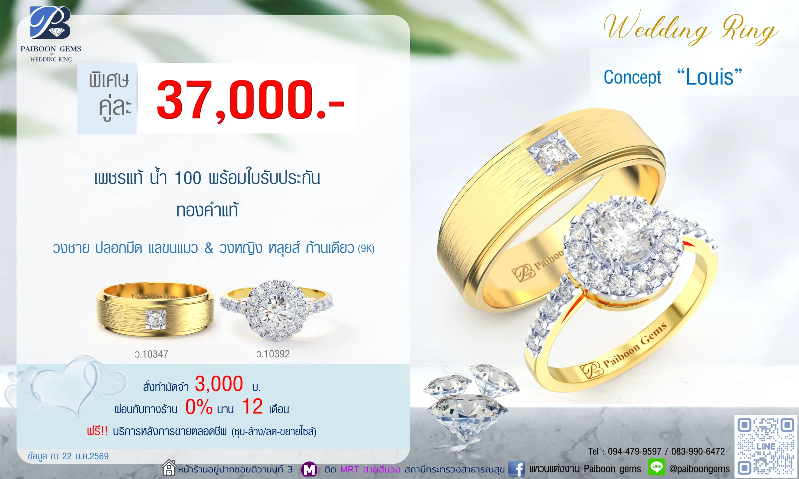 ผ่อนแหวนแต่งงานกับทางร้าน 0% นาน 12 เดือน