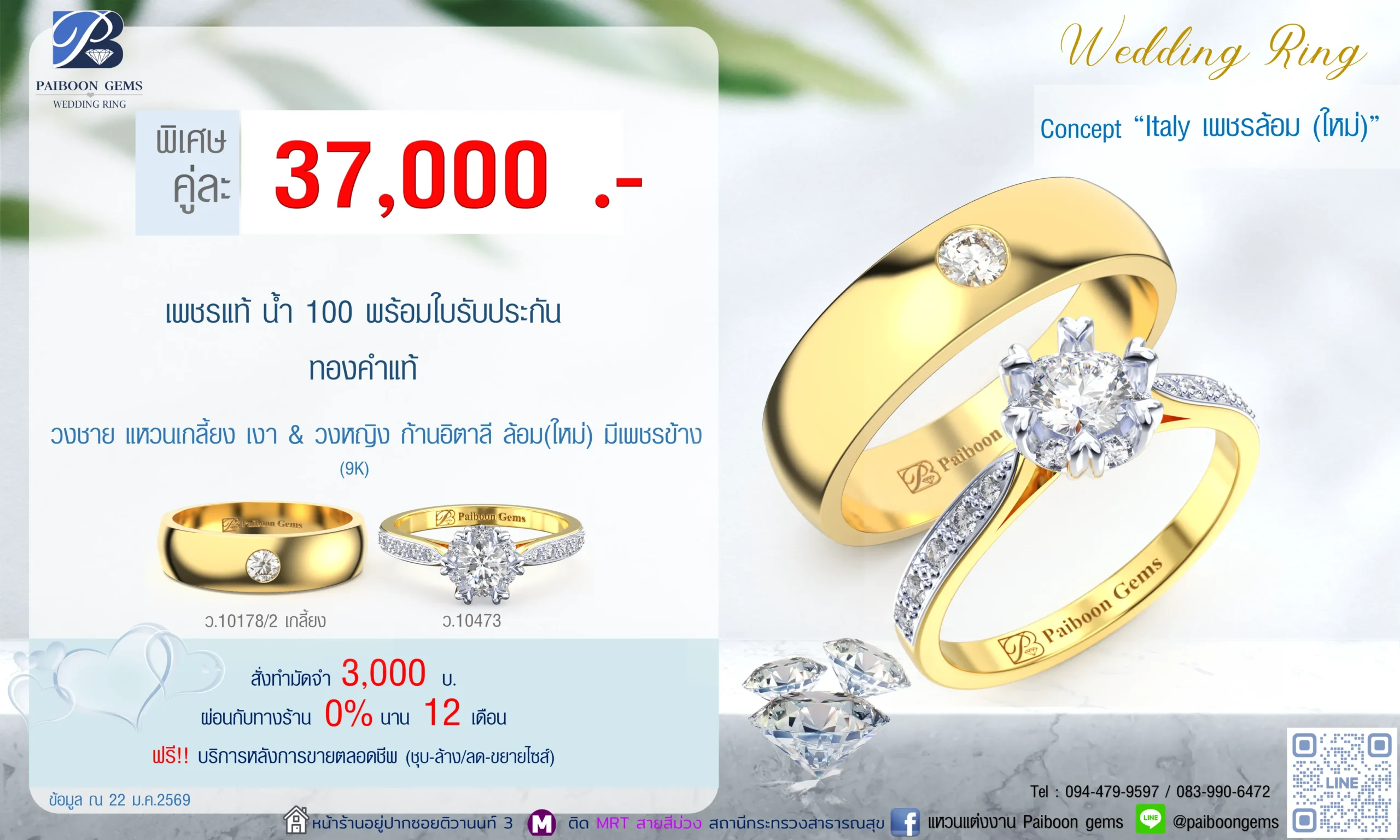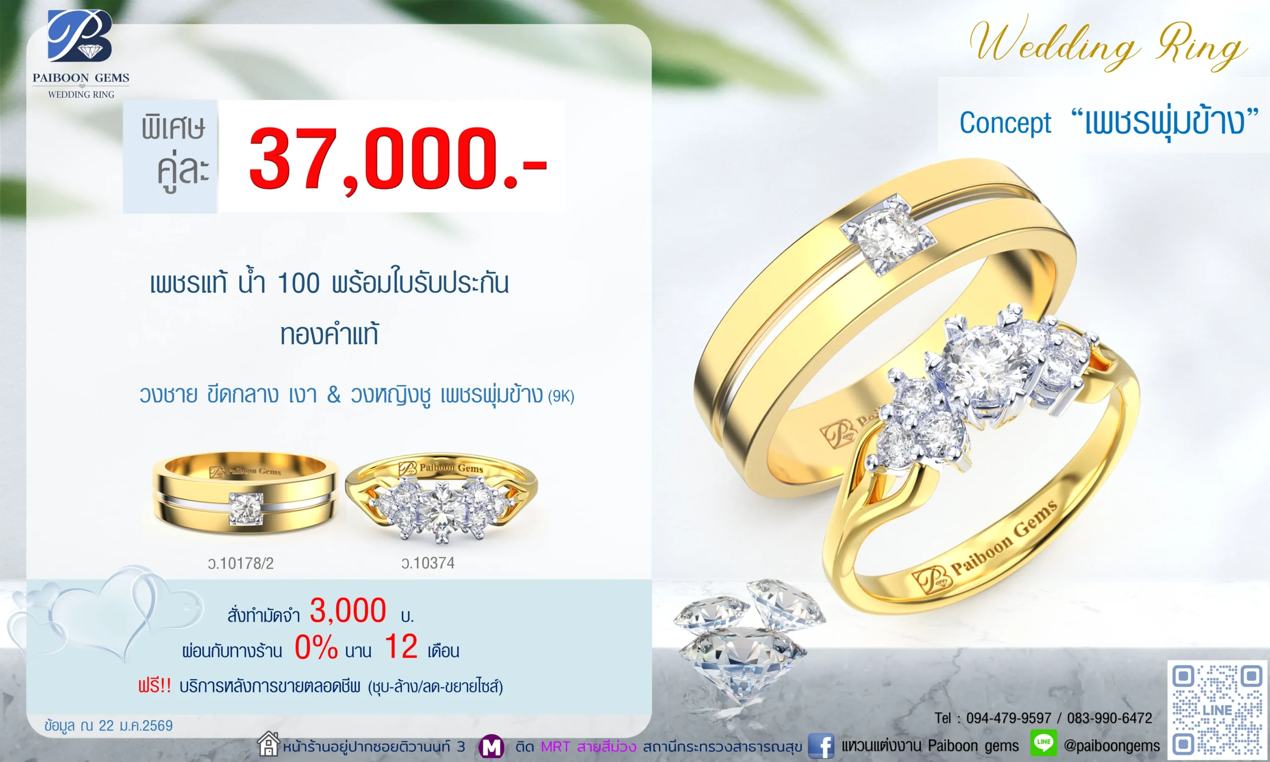 โปรโมชั่นแหวนคู่ ทองคำ 37,000 บาท